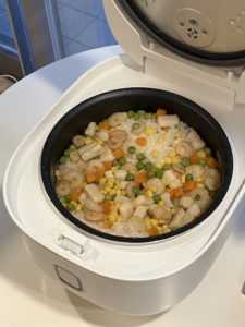 炊飯器からはとってもとっても良い香りが!最後にバターをたっぷり加えて完成です✨