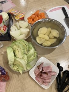 大きなお鍋でコトコト煮込むポトフ。