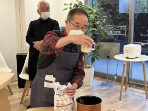 ご飯をしかけるところから始まるのが、男の料理教室の流れ。